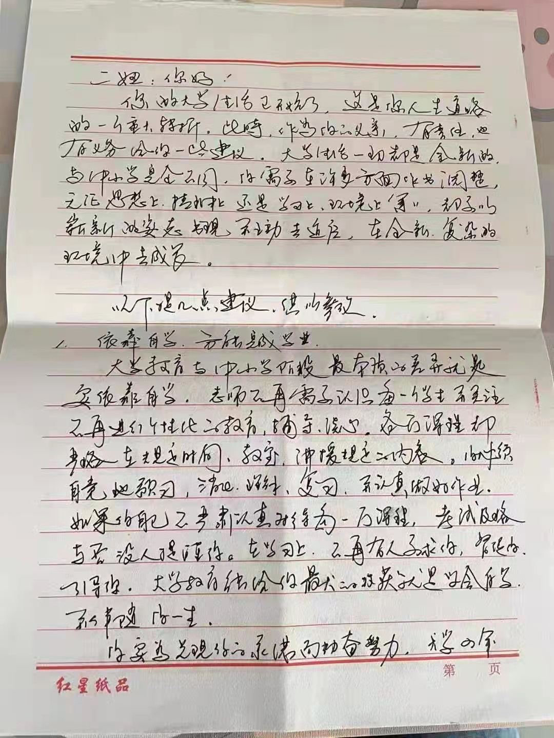 正如机械工程学院机械21401班的田佳宇在家书中提到的,第一次撰写家书,没有过分的煽情,只是通过朴实真切的话语告诉父母,自己关于过去、现在和未来的反思与选择。少女已经长大,父母可以放心了。