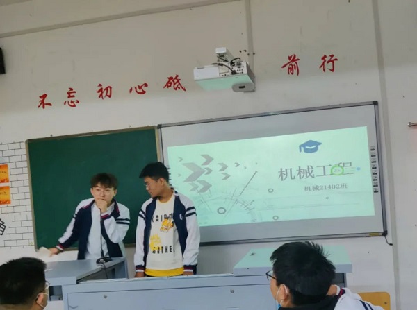 2021年11月5日,机械三班张凯同学在一教109开展了以“专业介绍”为主题的课前十分钟,参与成员为机械三班全体同学。