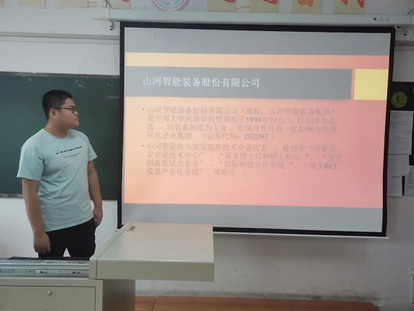 李鹏志同学讲述了山河智能装备股份有限公司是中南大学何清华教授领衔于1999年创办,以长沙为总部,以装备制造为主业 ,在国内外具有一定影响力的国际化企业集团。在2020年9月17日下午,习近平总书记来到位于长沙经开区的山河智能装备股份有限公司生产车间,察看装备制造流程,了解技术研发、生产制造情况,并对山河智能的创业精神和创新精神表示赞赏。