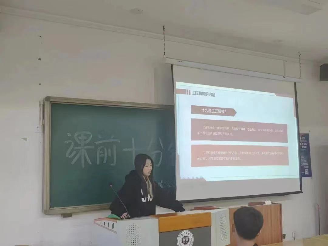 凡事都要脚踏实地去做,不驰于空想,不骛于虚声,而惟以求真的态度做踏实的工夫,这就是工匠精神。为了让同学们更好的了解和学习工匠精神,智能22301班于4月17日在二教206开展了“课前十分钟”活动。