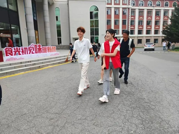 “满心欢喜,如约而至”,这是学院赠予新生的首份特别礼物。志愿者们身着鲜红马甲,以充沛的热情和周到的指引,将对新生的深厚期望融入每一次服务中。他们在各个新生报到点穿梭,帮助搬运沉重的行李;从校门引导至各专业报到点,耐心讲解报到流程;协助记录信息、分发生活物资,直至将新同学稳妥送达宿舍门口,以忙碌的身影打造温馨的“首站”。