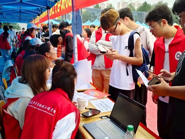 秋风轻拂,机械工程学院的新生们怀揣着青春的活力和对未来的向往踏入了校园。一天的迎新活动正如火如荼地进行,身着志愿服的学子们坚守岗位,他们热心引导、细致办理入学手续、耐心协助新生适应校园生活,以满腔热忱和笑容迎接每一位新成员,助力他们顺利迈入大学生涯。