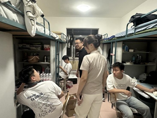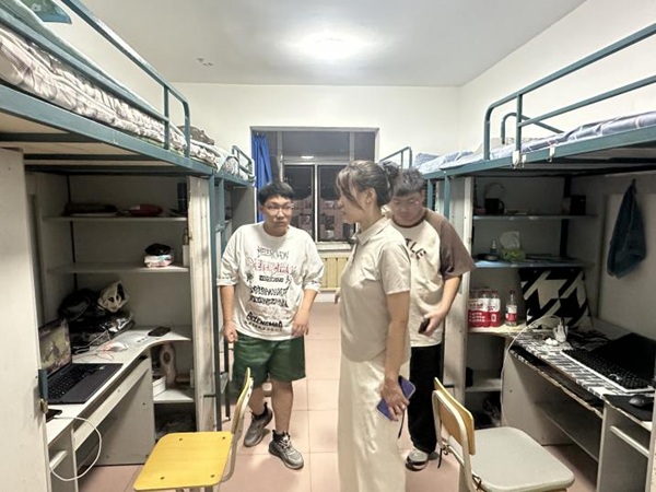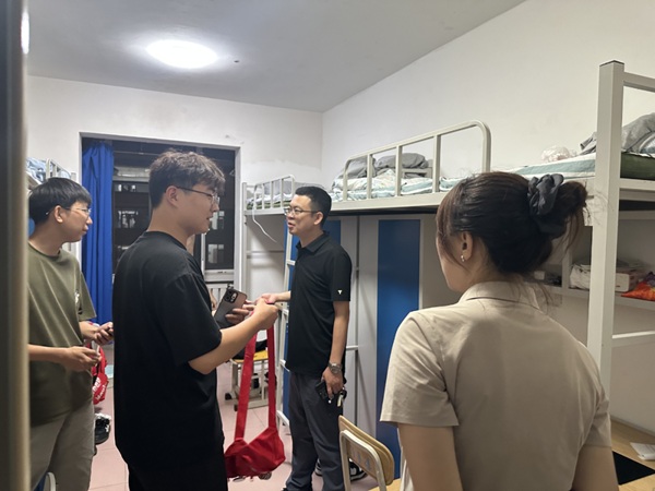 为切实加强学生宿舍管理工作,营造安全、文明、和谐的宿舍环境,进一步强化新生安全意识与纪律观念。2025 年 8月30 日晚,机械工程学院党总支副书记王凯、2025级辅导员李依庭共同深入宿舍进行专项走访。