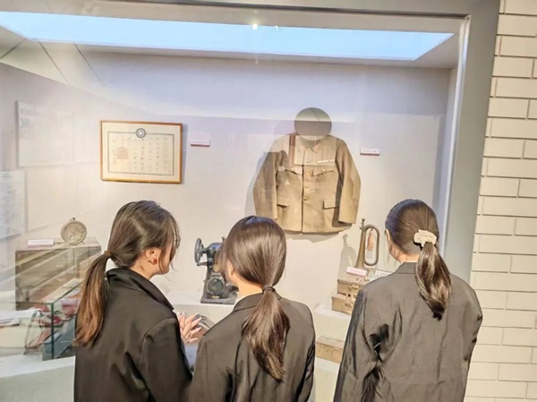 献花仪式后,同学们走进南大营旧址陈列馆。馆内,泛黄的历史图片与珍贵的抗战文物,无声诉说着“九一九”长春抗战那段悲壮而光辉的岁月。大家放慢脚步,凝神聆听讲解,目光久久停留在展品上,在历史的细节中真切触摸斗争的艰辛,也更加懂得了和平与胜利的来之不易。