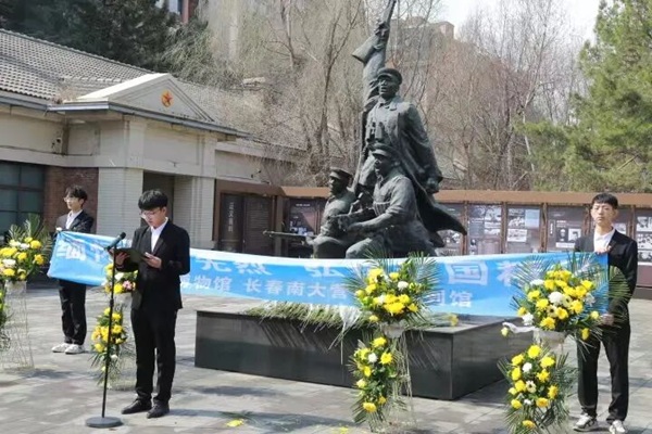 2026年4月4日,清明时节,长春南大营旧址陈列馆内松柏静立,庄严肃穆。来自机械工程学院的学生代表怀着崇敬之情,自发齐聚于此,开展以“缅怀革命先烈,弘扬爱国精神”为主题的清明祭扫活动。
