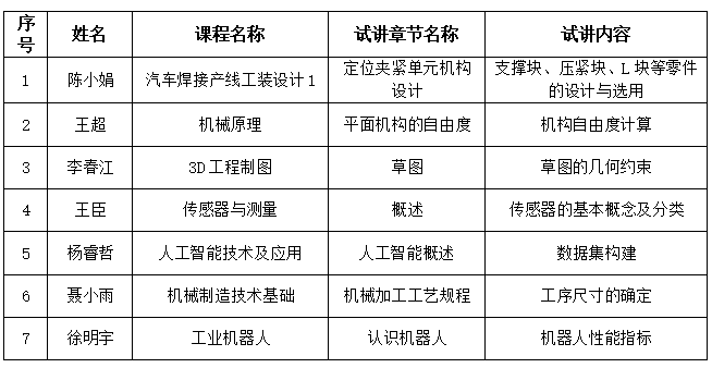 试讲教师及课程情况如下: